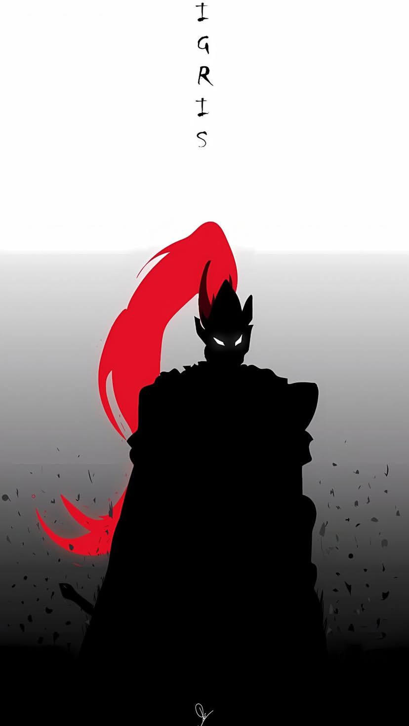 This bold and mysterious poster captures the silhouette of a fierce warrior, engulfed in shadows with piercing white eyes that glow with intensity. The striking contrast between the dark figure and the bright red flame-like shape behind them adds a dramatic and powerful aura. The minimalistic use of colors—black, white, and red—heightens the sense of danger and strength. The vertical text above the character adds an intriguing element, inviting viewers to explore the story behind this enigmatic figure. This poster perfectly embodies themes of power, mystery, and resilience.